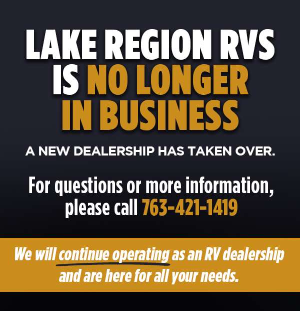 Lake Region RVs is not responsible for any misprints, typos, or errors found in our website pages. Any price listed excludes sales tax, registration tags, and delivery fees. Manufacturer pictures, specifications, and features may be used in place of actual units on our lot. Please contact us @763-241-1419 for availability as our inventory changes rapidly. All calculated payments are an estimate only and do not constitute a commitment that financing or a specific interest rate or term is available.