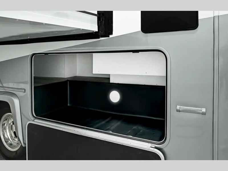 Each is built with an automatic 9G-Tronic transmission, and includes lane assist, attention assist, and adaptive cruise control for safety on the highways and in town. Some of the exterior features include upgraded MorRyde cargo doors, an armless awning, a rear fiberglass cap, and integrated fiberglass running boards. Inside you'll enjoy solid surface countertops with lit edge banding, an upgraded kitchen sink and faucet, a soft touch ceiling, and more comforts!