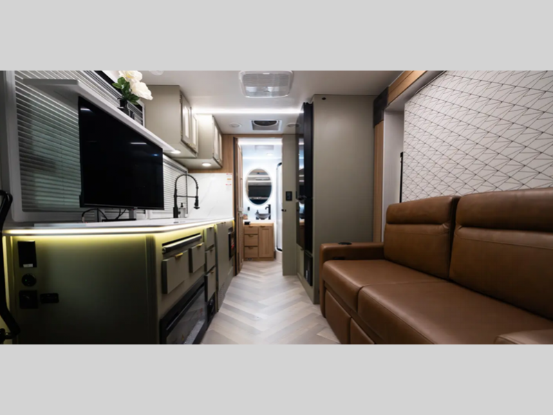 Sleeps 3 Slides 1 Length 25 ft Ext Width 7 ft 8 in Ext Height 11 ft 7 in Int Height 6 ft 9 in Exterior Color Arctic, Smokey Mountain, Everglade, Cacti Green, Harbor Blue Hitch Weight 5000 lbs GVWR 11030 lbs Fresh Water Capacity 32 gals Grey Water Capacity 32 gals Black Water Capacity 32 gals Fuel Type Diesel Engine 4-Cylinder High Output Chassis Mercedes-Benz Sprinter Horsepower 208 hp Fuel Capacity 26 gals Wheelbase 170 in Number Of Bunks 1 Available Beds RV Queen Torque 322 ft-lb Cooktop Burners 2 Shower Size 35" x 35" Number of Awnings 1 Axle Weight Front 4081 lbs Axle Weight Rear 7721 lbs LP Tank Capacity 80 lbs. Water Heater Type Truma Aqua Go On Demand AC BTU 15000 btu TV Info Coach TV Lift Awning Info 14' Thule Armless Washer/Dryer Available Yes Gross Combined Weight 15250 lbs Shower Type Neo-Angled Similar Floorplans