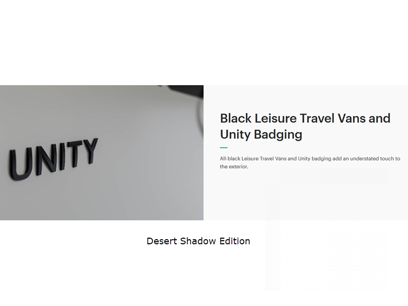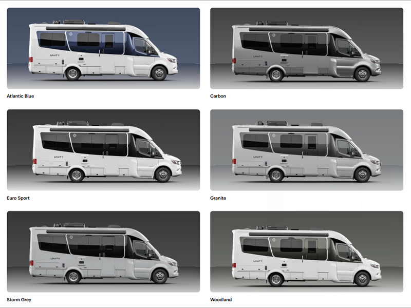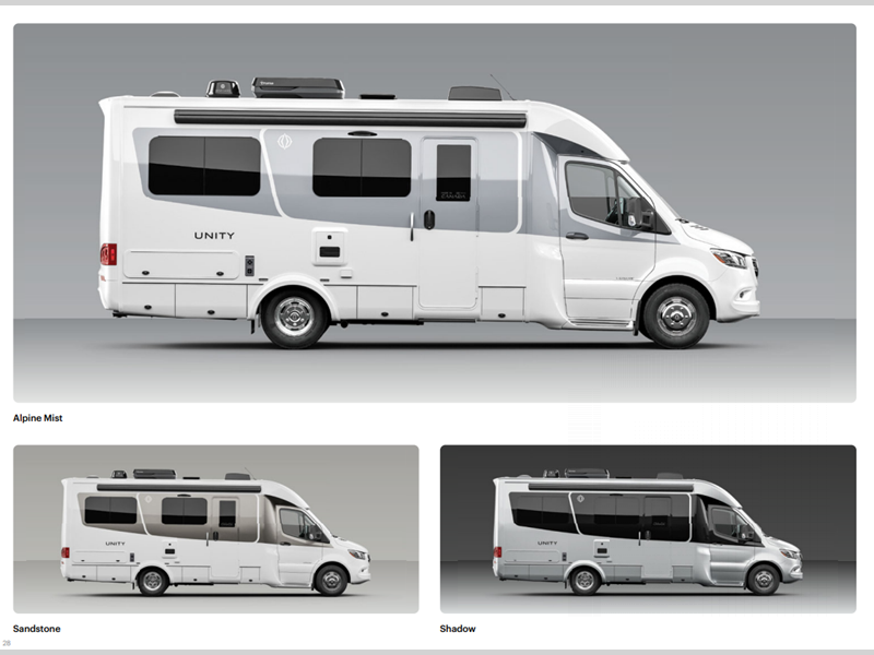 There are versatile floorplans to choose from, all including dry baths, fully equipped kitchens to prepare meals each day, and comfortable sleeping arrangements. Each model sits on the durable and luxurious Mercedes-Benz Sprinter 3500 dual rear wheel chassis for the ultimate driving experience, plus there are power/heated Ultraleather cab seats for even more comfort. A few new features include an all-new entry door, new taillight design, a remote key fob entry on the main entrance door, and more. There is also a Desert Shadow package available on any Unity model; see dealer for more details.