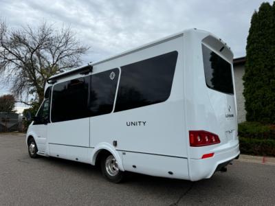 Each Unity Class B+ diesel motorhome by Leisure Travel sits on a durable Mercedes-Benz Sprinter 3500 dual rear wheel chassis with a 2.0-L Turbocharged I-4 diesel engine to power your adventures. The powder coated steel undercarriage support structure and vacuum-bonded construction provide a coach that will last for years, and there are eight sleek exterior paint options to make the coach your own. You'll love driving the Unity with its electronic stability control, adaptive cruise control, 9-speed automatic transmission with quieter noise levels and more comfort. There is even a digital mirror with sharp high-resolution that can be switched between convectional display and digital display for convenience. The luxurious interior includes Ultraleather furniture, a contoured solid surface Corian countertop in the kitchen, new decor options, plus many more comforts. And all of your power need will be met with 270-Ah, 12V Lithium coach batteries with an internal heating system, plus a 3000W pure sine inverter and a 30 Amp power cord. If you choose the optional 60th Anniversary Edition, you will enjoy the Diamond White exterior paint, diamond-quilted upholstery, Cool Ice Ultrafabrics, matte black hardware, and more elegant features that are exclusive to this package!